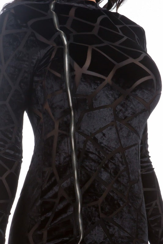 Sexy party dress, round neckline, long sleeves, front zip-up,sexy cute looks