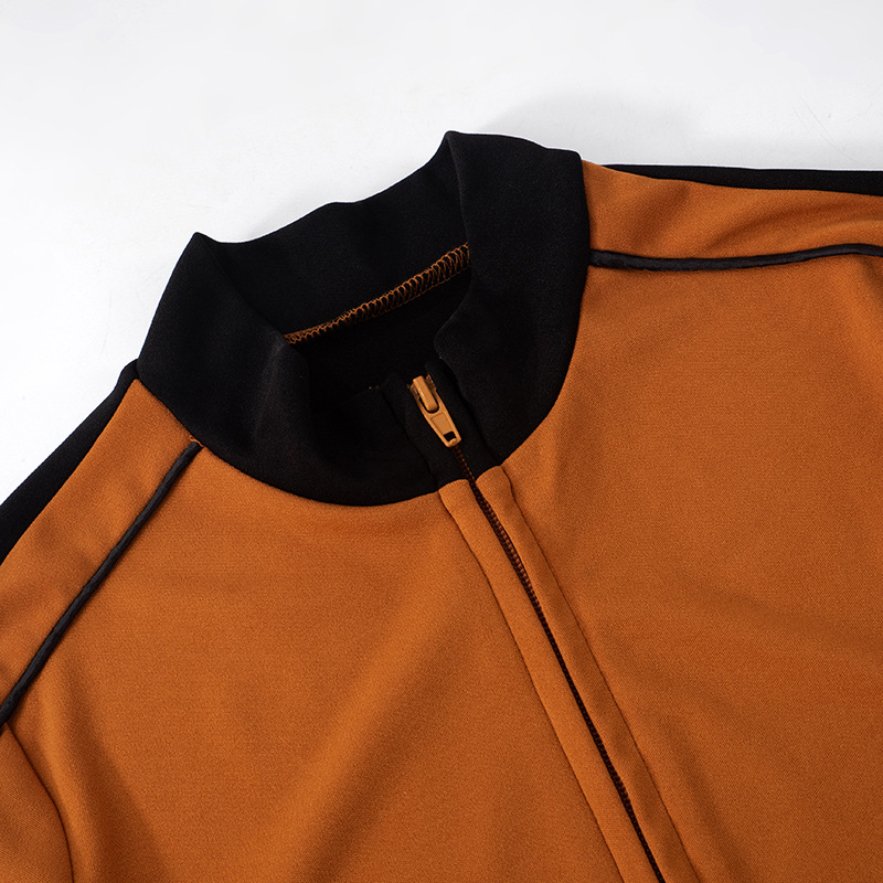 Get ready for your next workout with this stylish Contrast Color Collarless Jogging Suit. This suit features a unique contrast color design, giving you a fashion-forward look while providing ultimate comfort during your workouts. Don't compromise style for comfort - get the best of both worlds with this jogging suit.