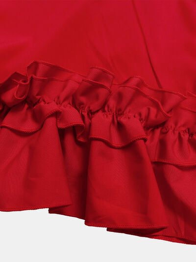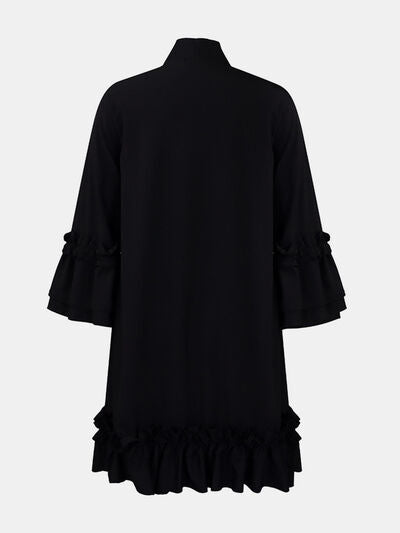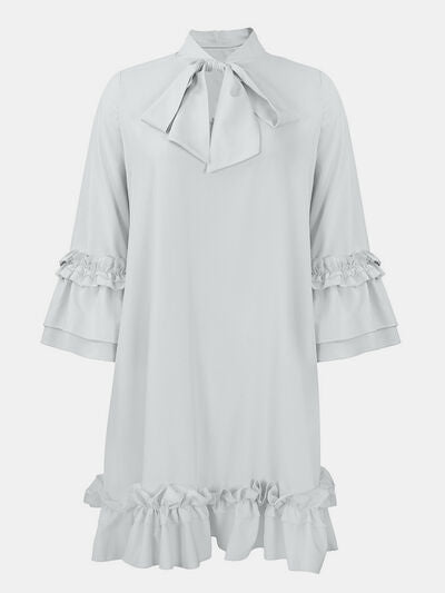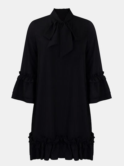 Frill Tie Neck Three-Quarter Sleeve Dress