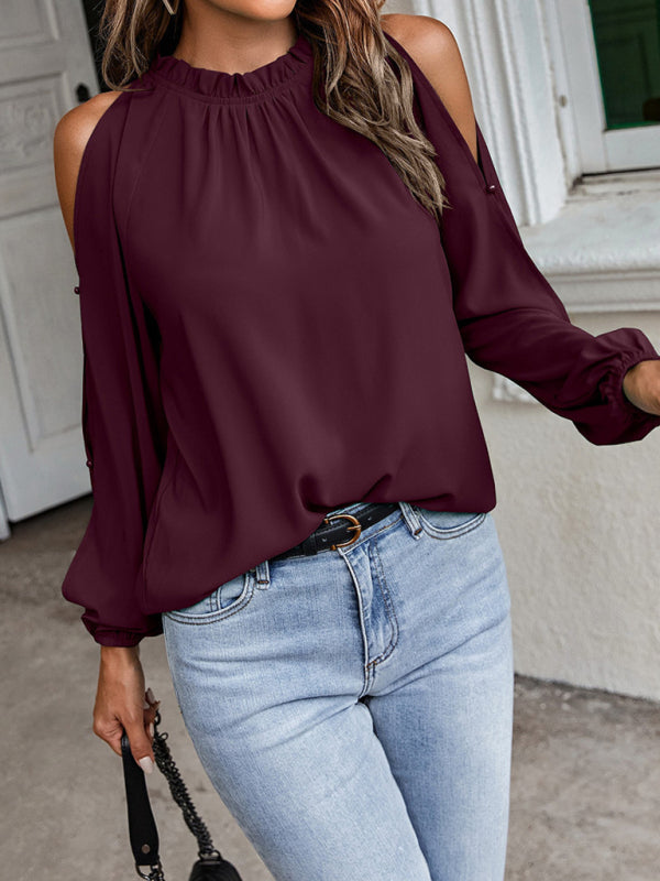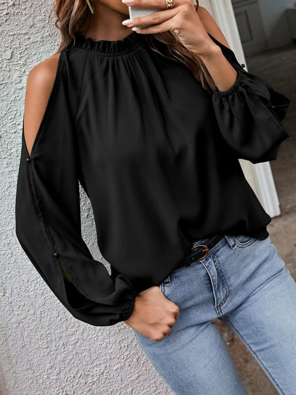 New Women's Ruffle Round Neck Long Sleeve Gathered Strapless Fashion Top