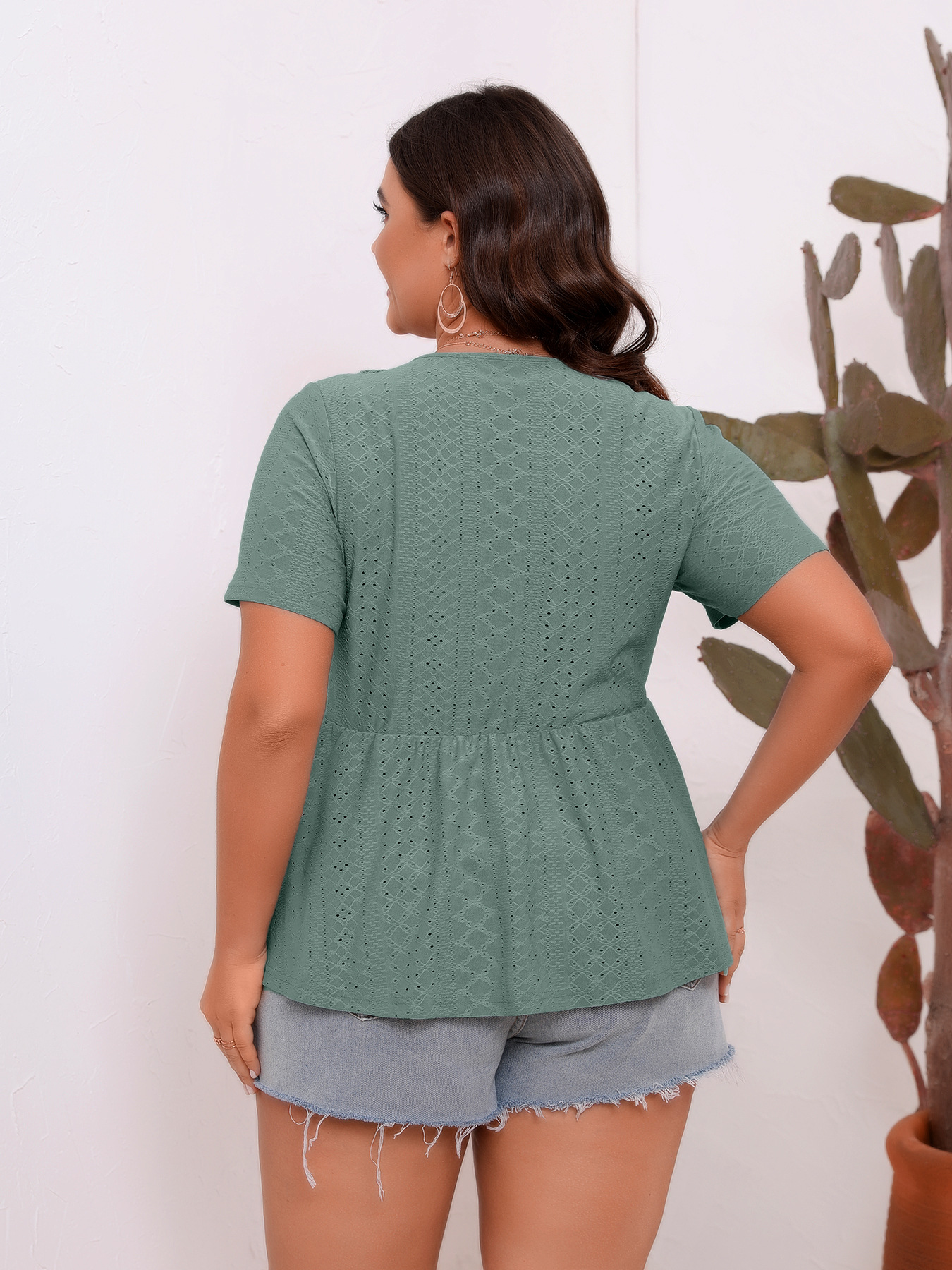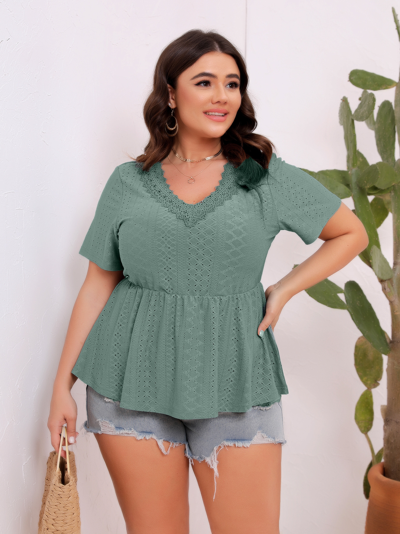 Plus Size Summer Short Sleeved T shirt Women Stitching Lace V neck Top