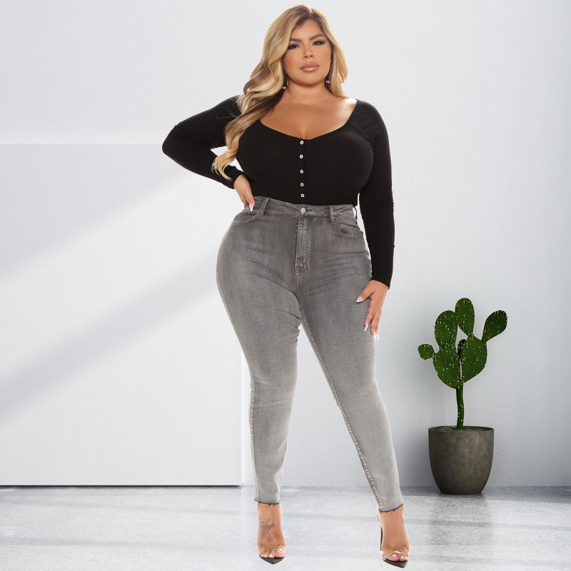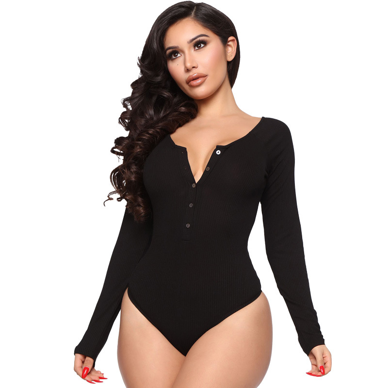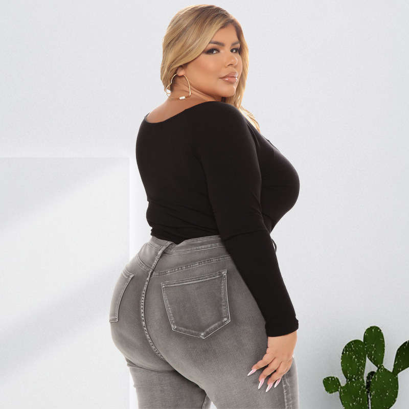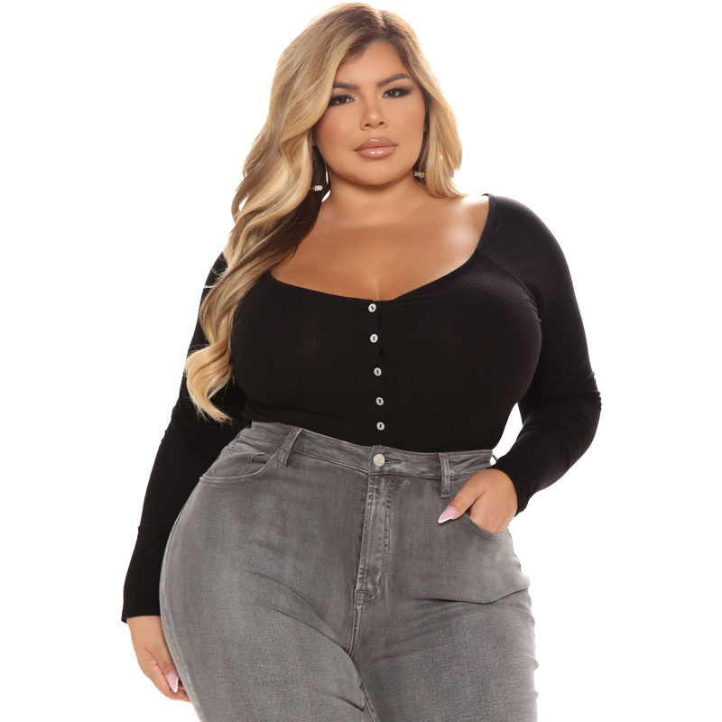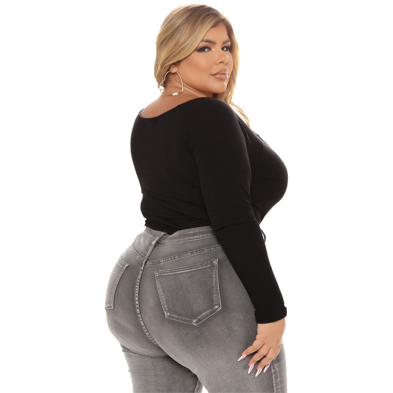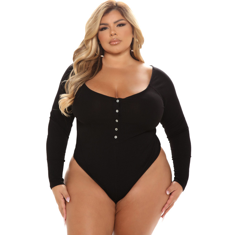 Plus Size U Collar Breasted Long Sleeve Jumpsuit
