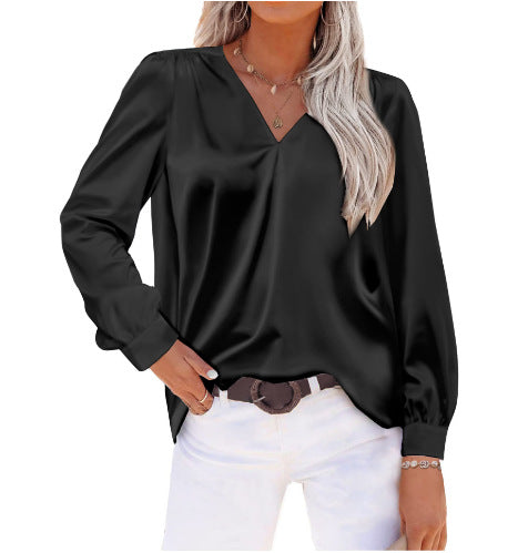This elegant Satin Pleated V Neck Loose Satin Shirt is the perfect combination of sophistication and comfort. Made with soft and sleek satin fabric, it features a flattering V neck design and loose fit for effortless style. Elevate your wardrobe with this versatile and luxurious shirt.