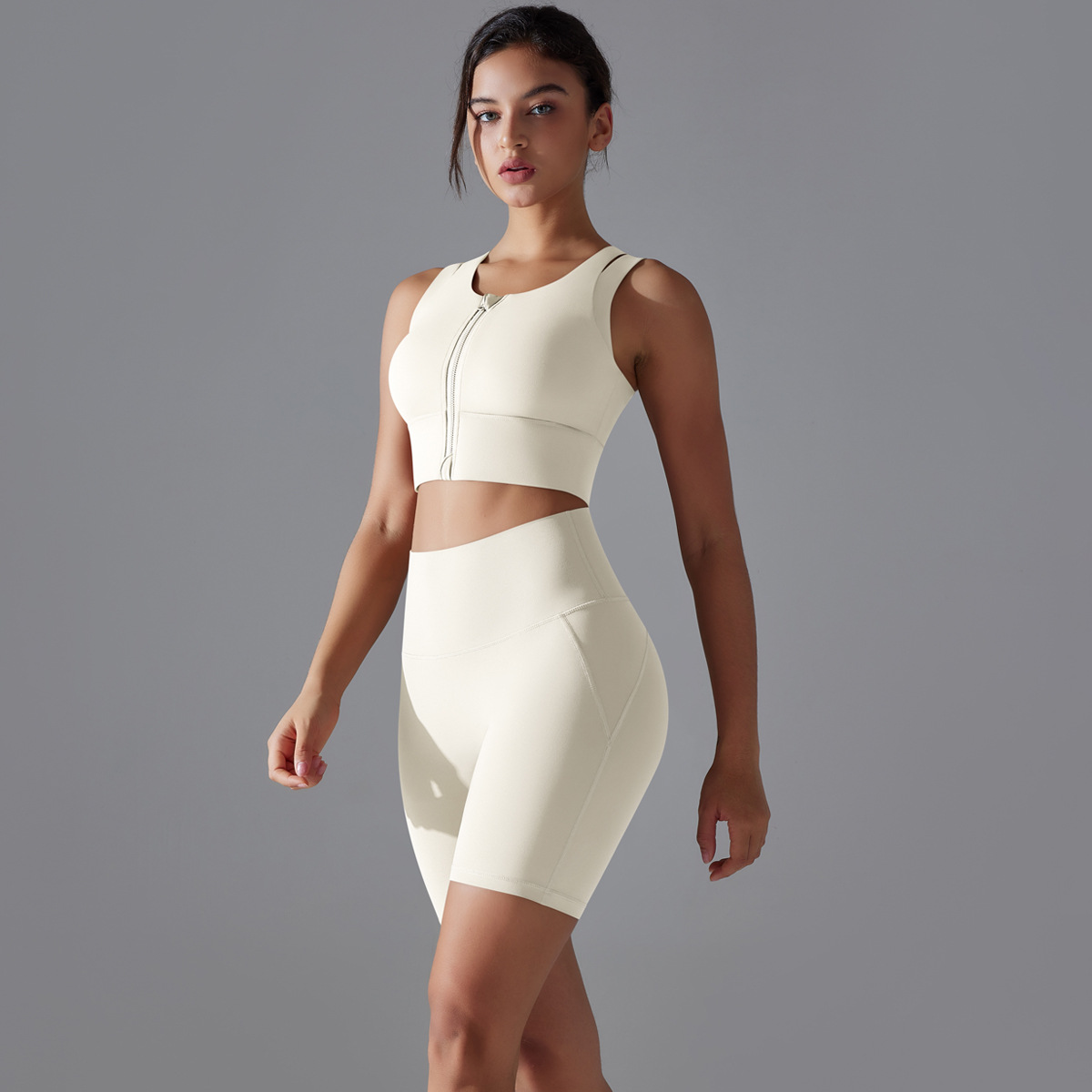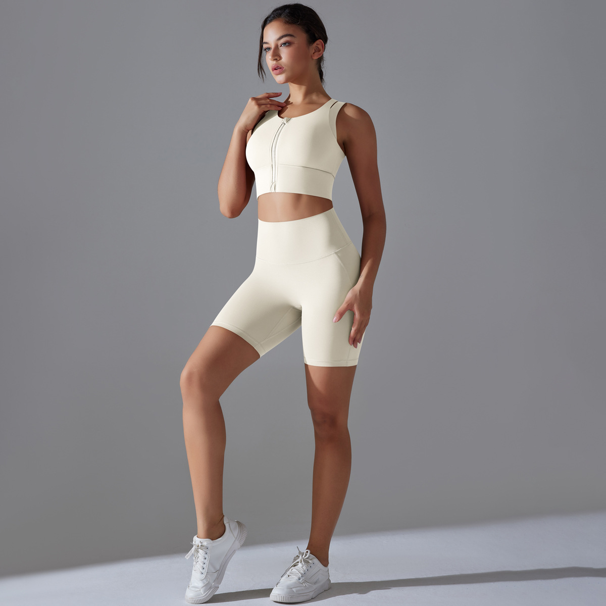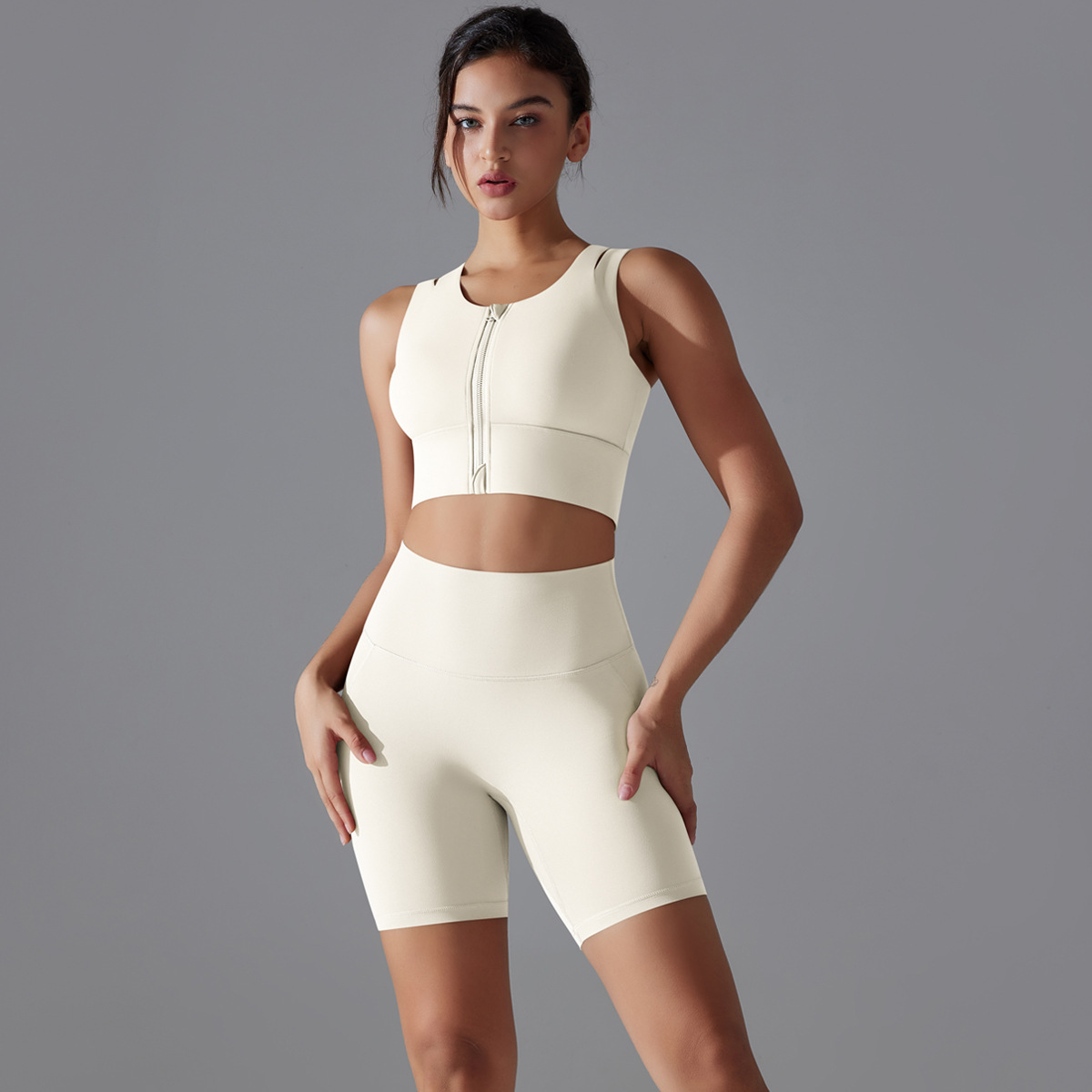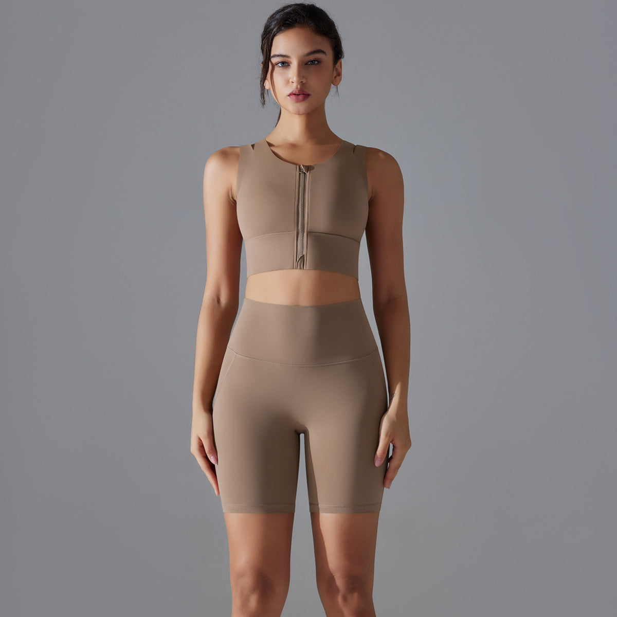 Seamless Nude-Feel Yoga Set – Shockproof Vest & High-Strength Shorts