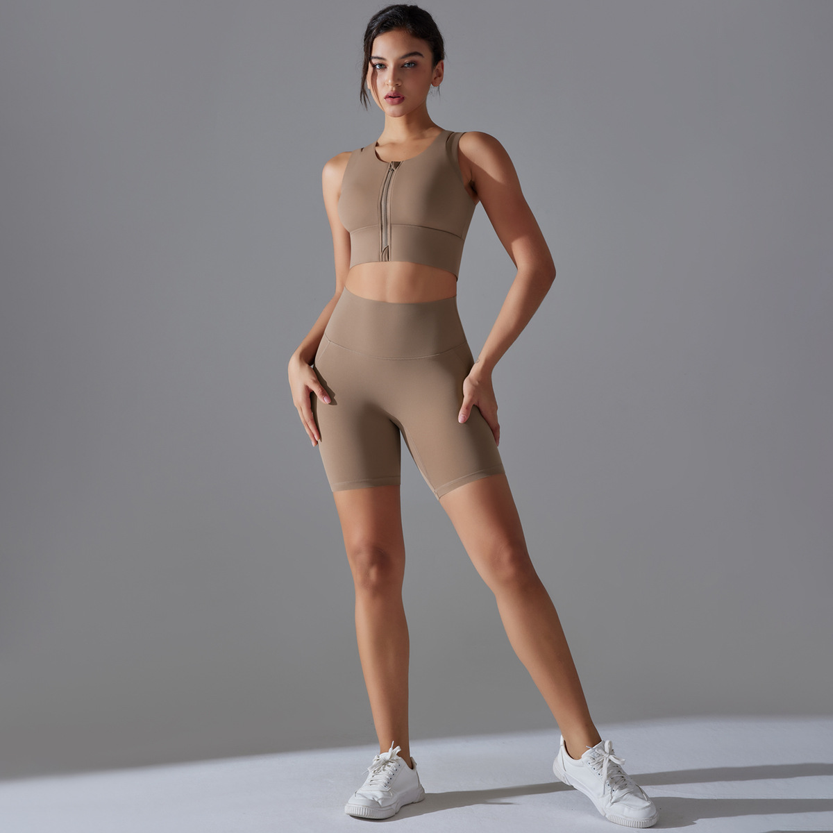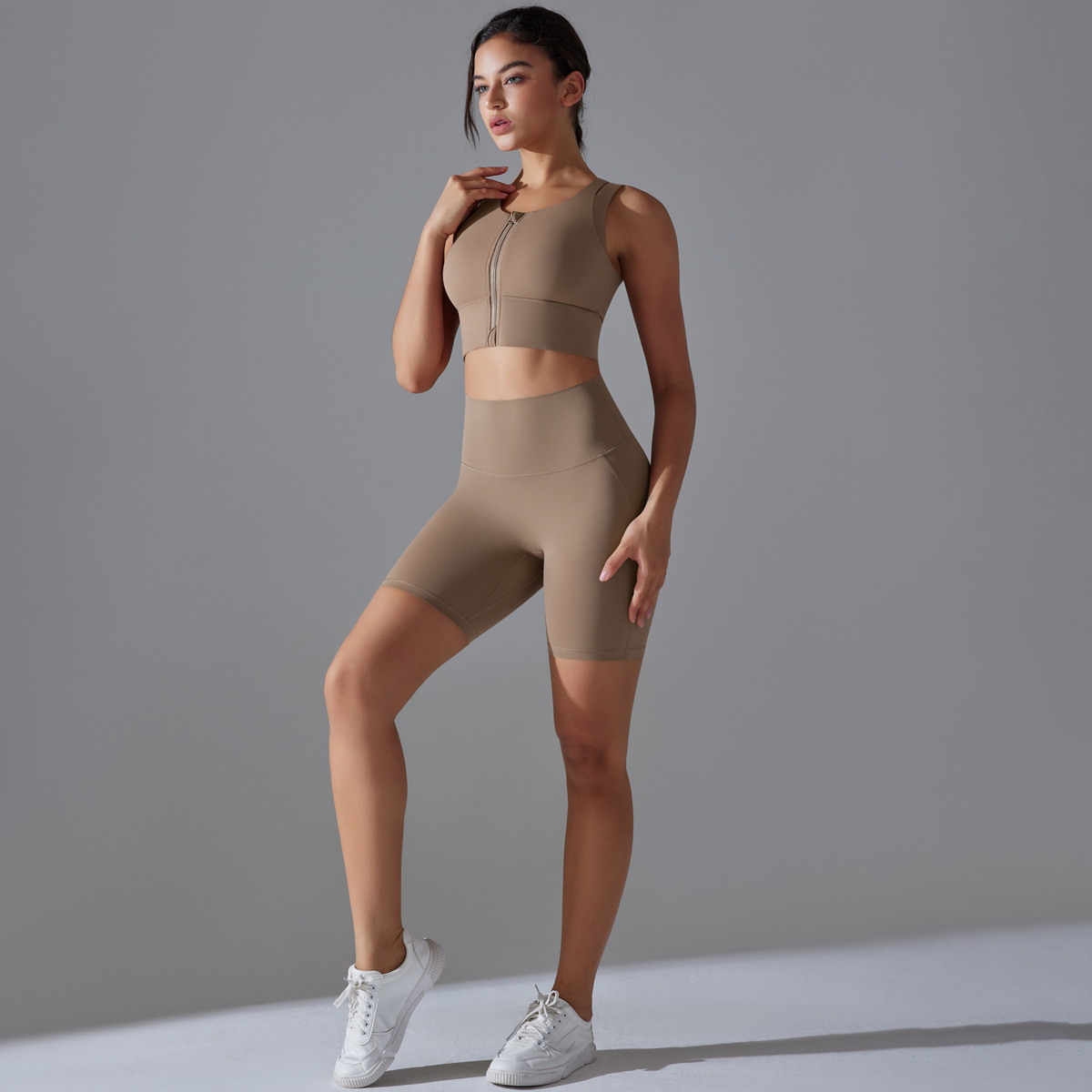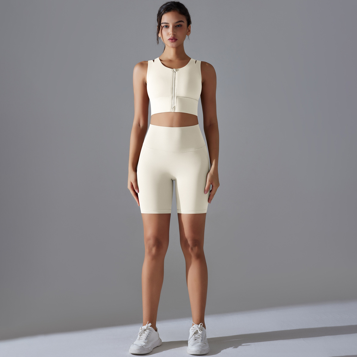 Seamless Nude-Feel Yoga Set – Shockproof Vest & High-Strength Shorts