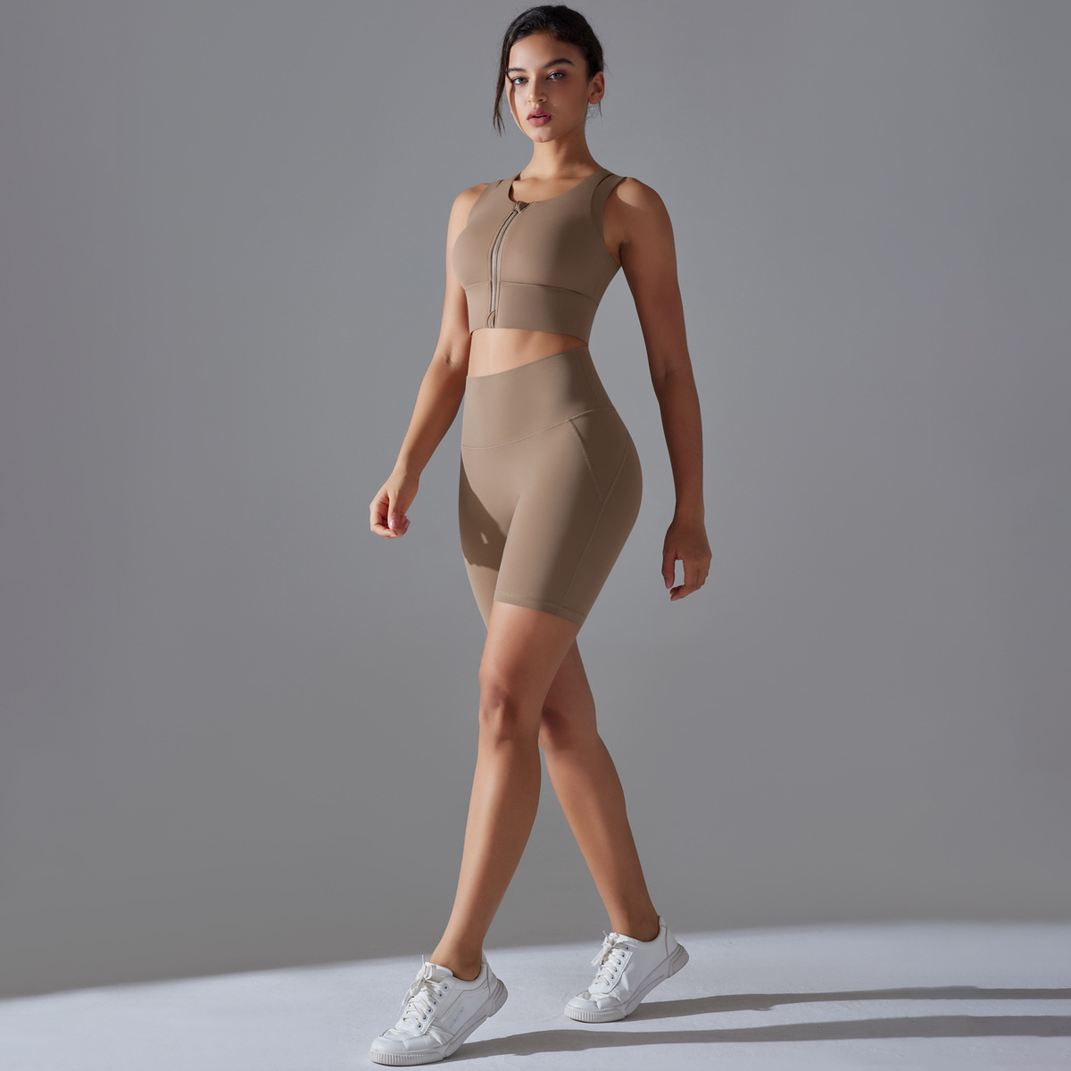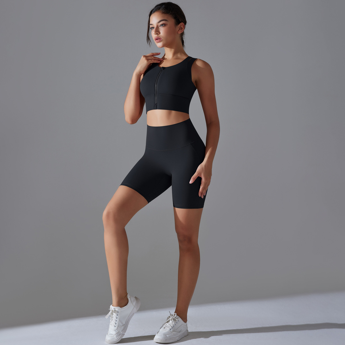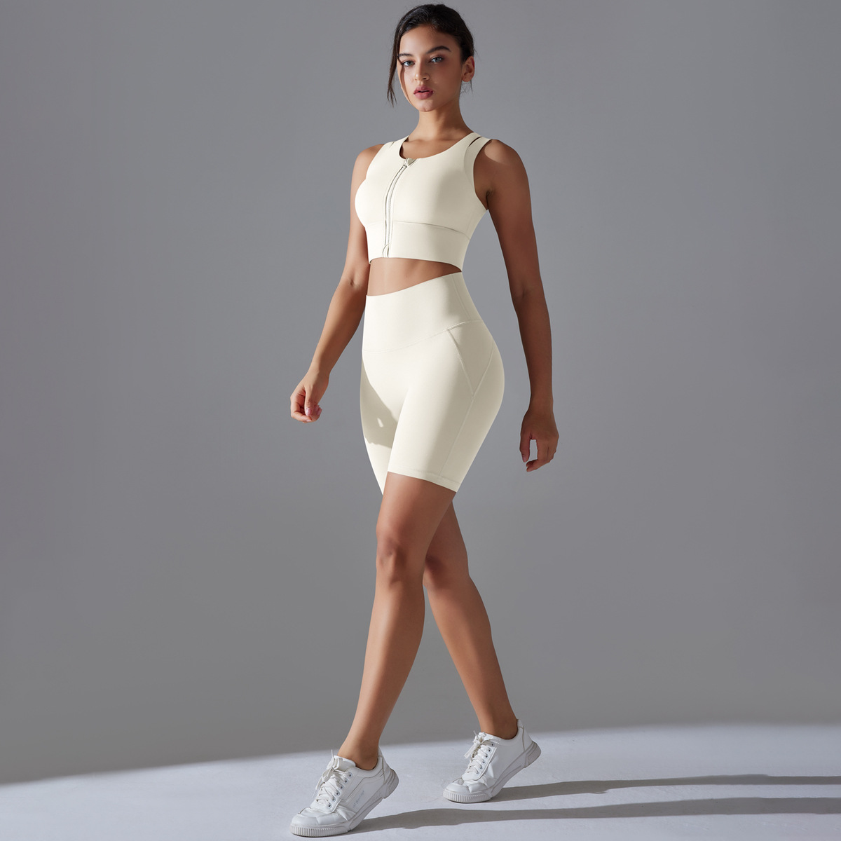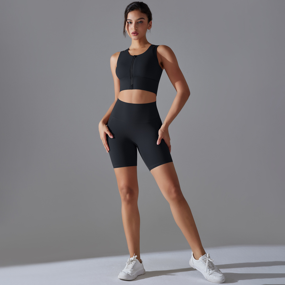 Seamless Nude-Feel Yoga Set – Shockproof Vest & High-Strength Shorts