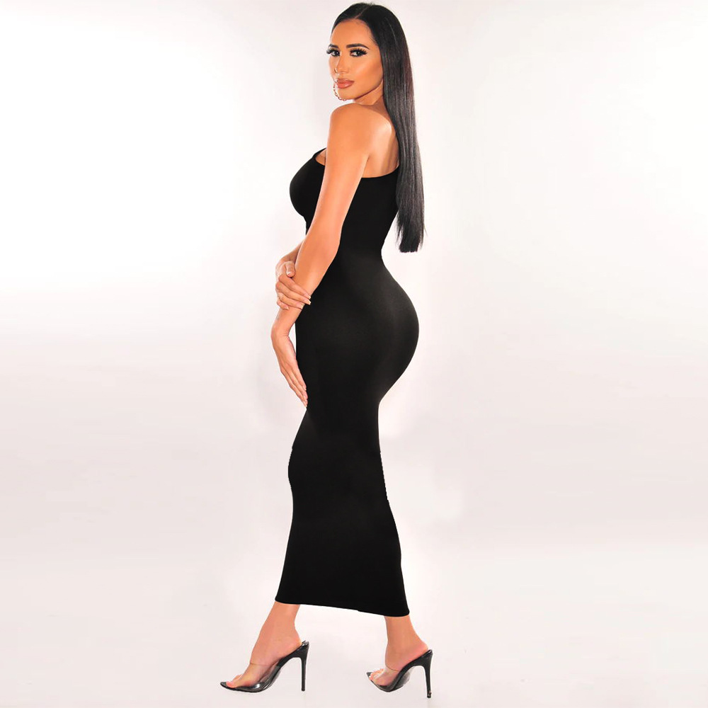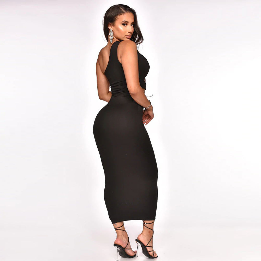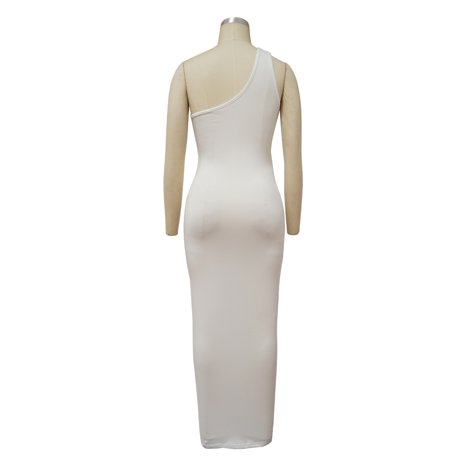 Elevate your style with our Slant Shoulder Asymmetric Slim Dress. This modern and chic dress features a unique slant shoulder design and a flattering asymmetric hemline. Crafted with a slim fit, it accentuates your figure while providing comfort. Perfect for any occasion, make a statement with this must-have dress.