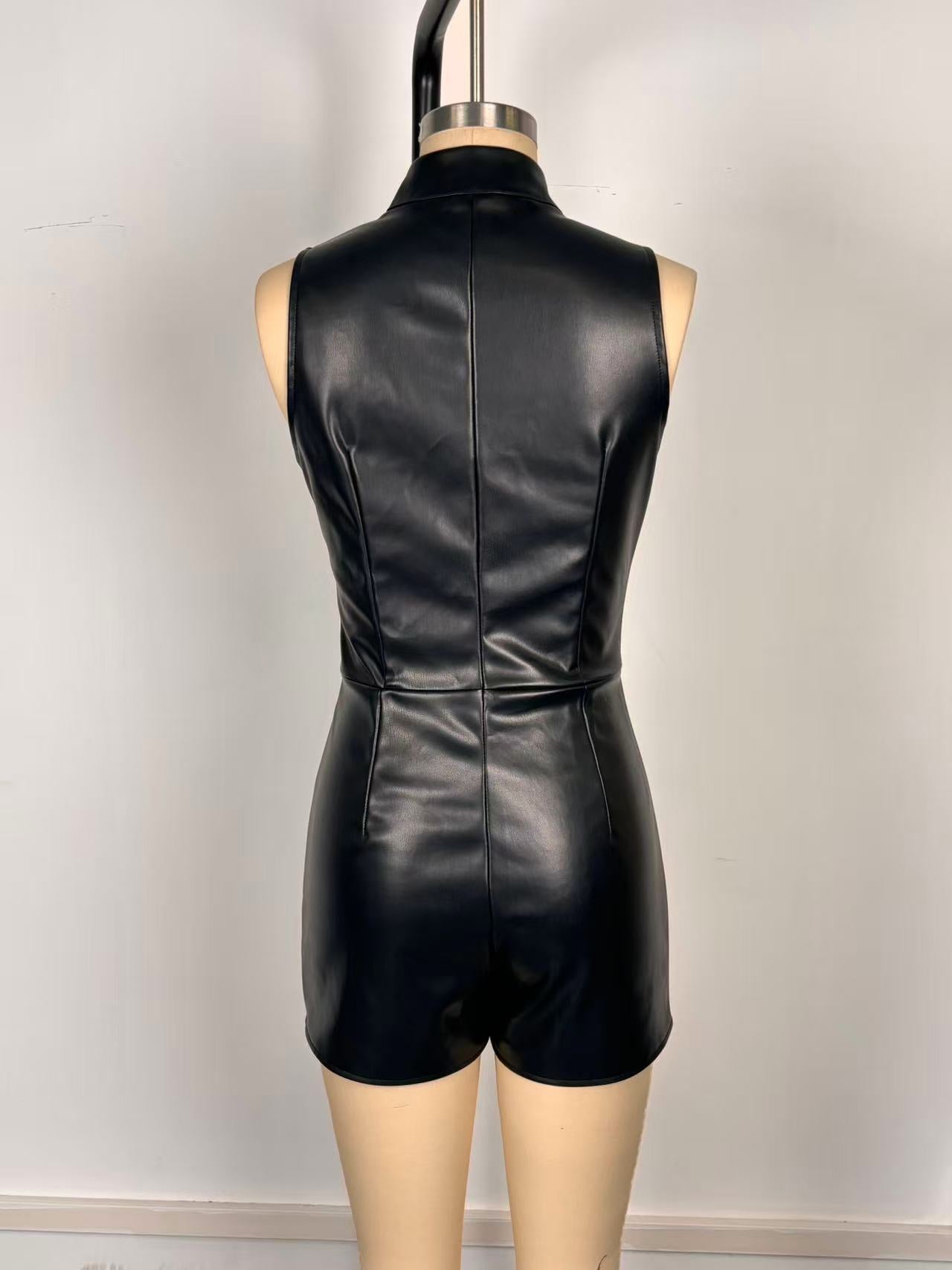 Sleeveless Faux Leather Nightclub Jumpsuit