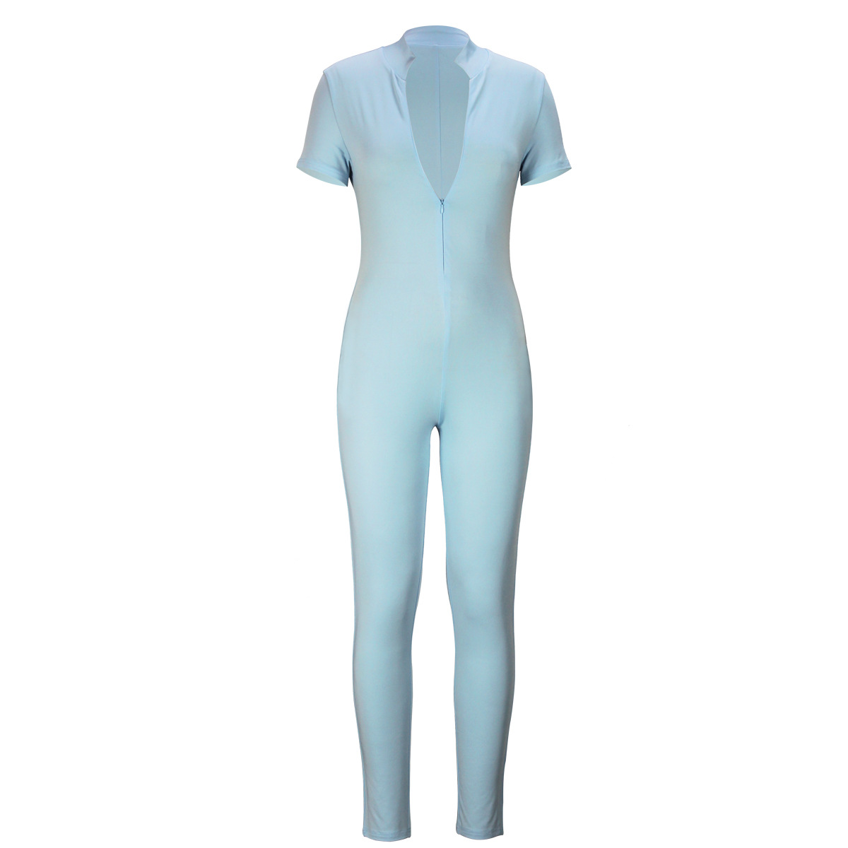 This slim fit jumpsuit features a zipper for easy on and off, ensuring a secure and comfortable fit. Its tight design hugs your curves and accentuates your figure, making you feel confident and stylish. Upgrade your wardrobe with this versatile and flattering piece.