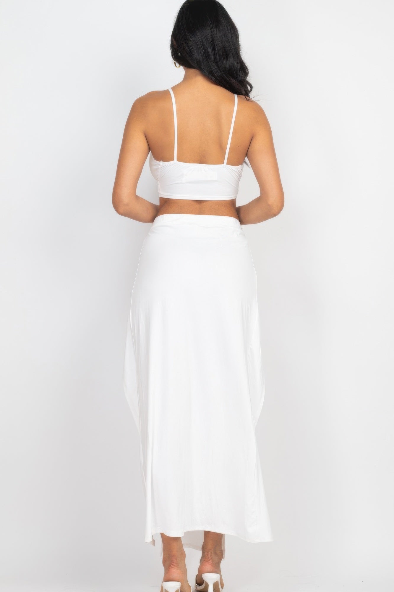 Versatile Styling: Pair the set together for a chic, coordinated look, or mix and match the bra top with other skirts or the maxi skirt with a different top for endless styling options.