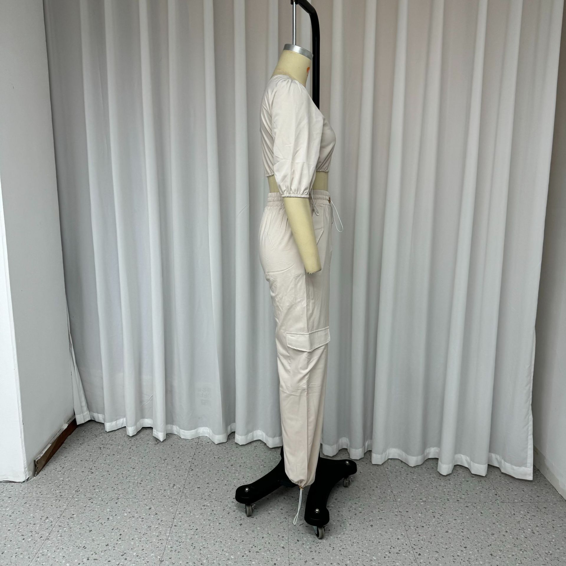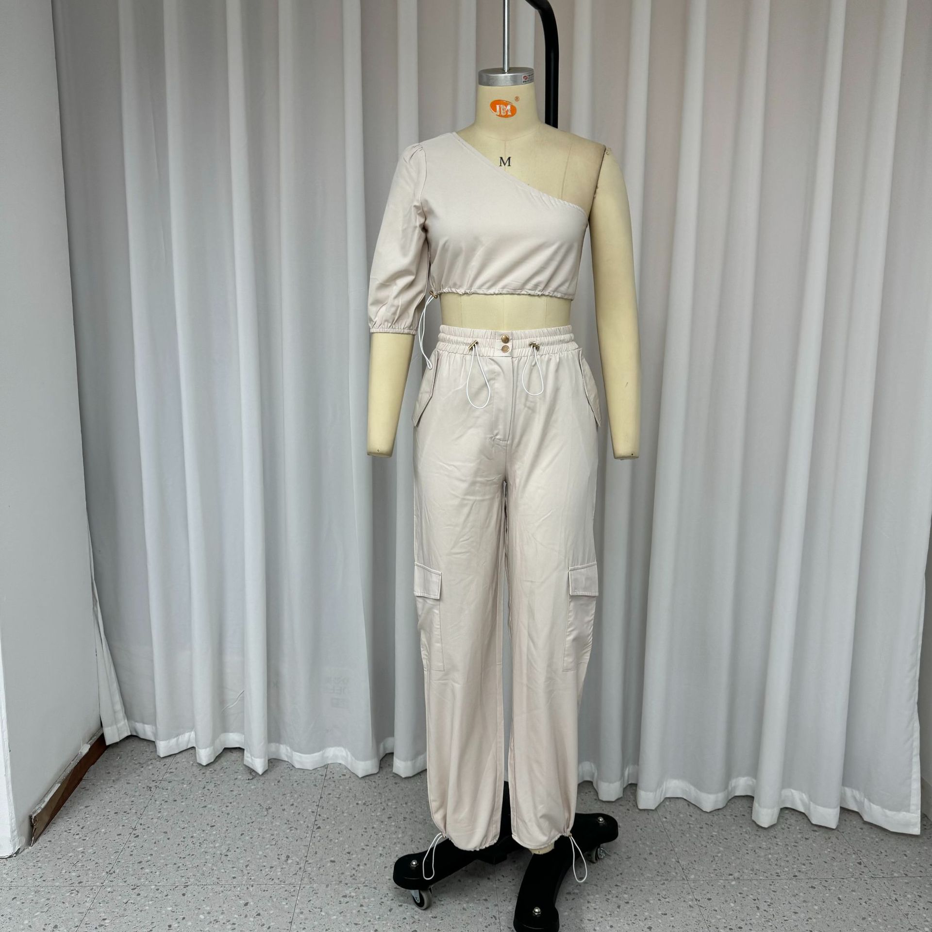 Women Clothing Casual Solid Color One Shoulder Solid Color Two Piece Set