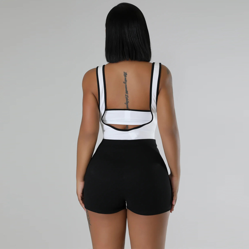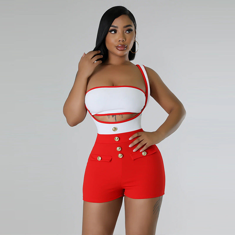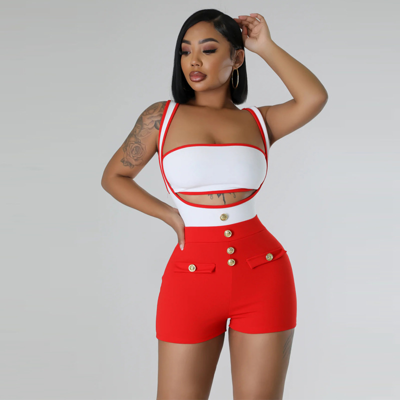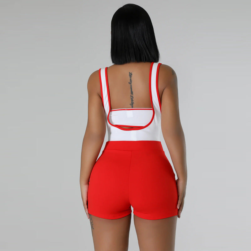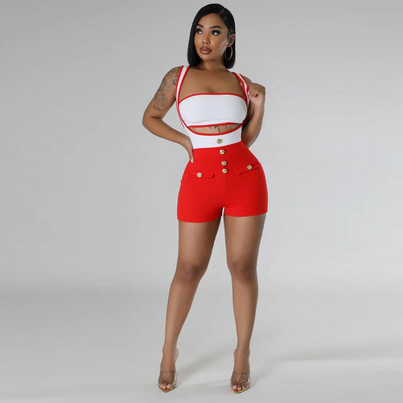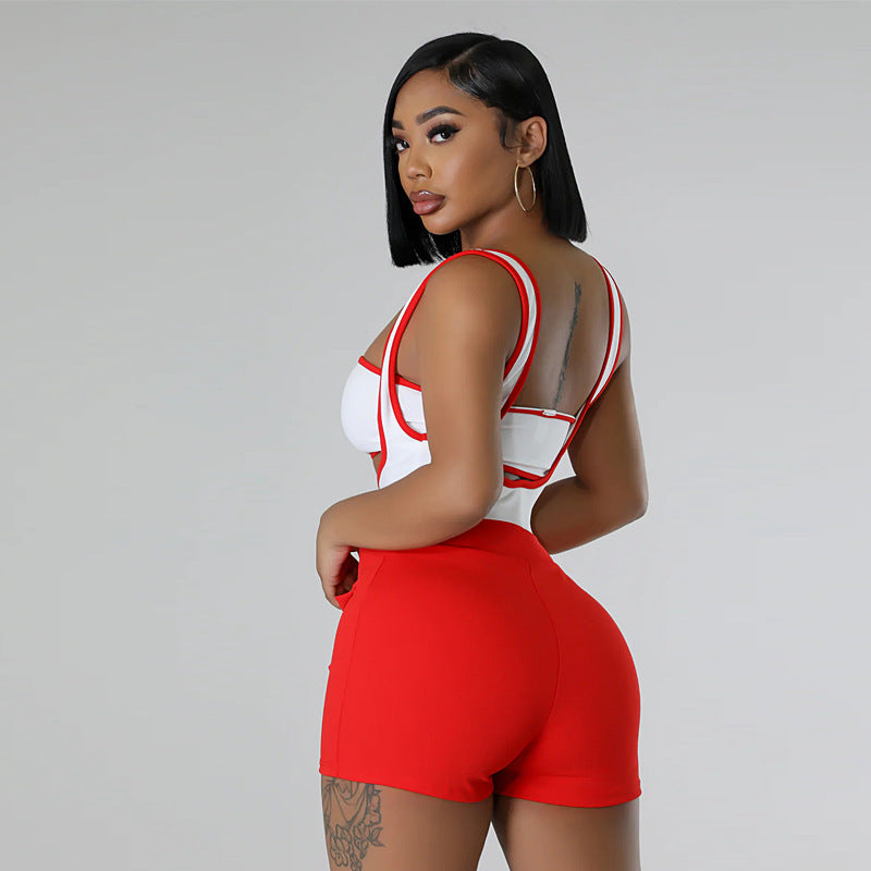 Women Clothing Color Matching Stretch Shorts Suit Summer Sleeveless Suspender Shorts Sexy Two Piece Suit