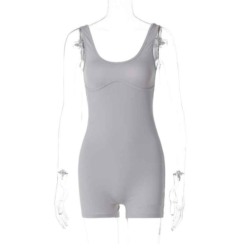 Women's Street Shooting Solid Color Slim U Neck Shoulder Strap Jumpsuit