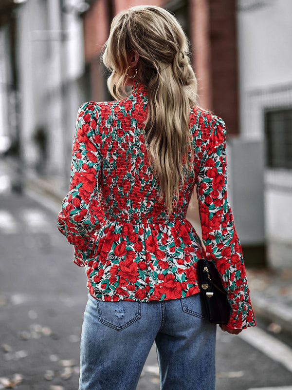 Women's Elegant waist Puffy Sleeve Round Neck Top
