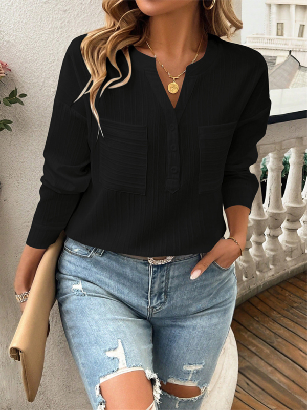 Experience effortless style with our Women's shirt! Featuring a flattering v-neck design and a casual, solid color, this pullover top is perfect for any occasion. Elevate your wardrobe with this must-have piece and make a statement wherever you go.