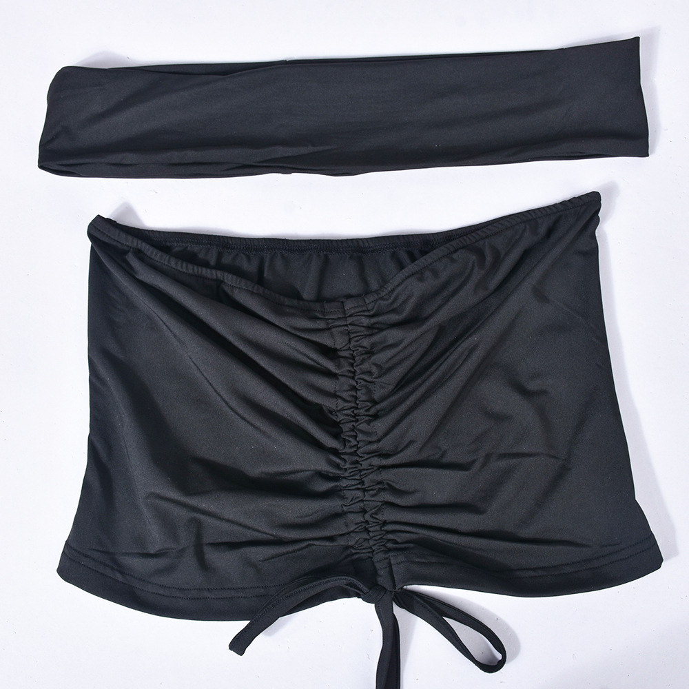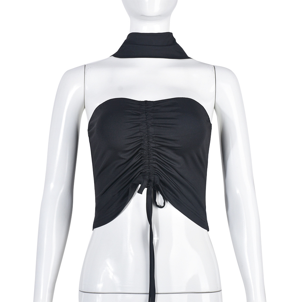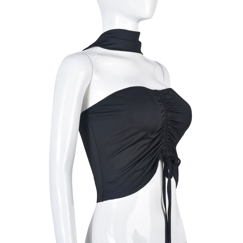 Wrapped Chest Pleated Drawstring Tube Top Cool Summer Women Top