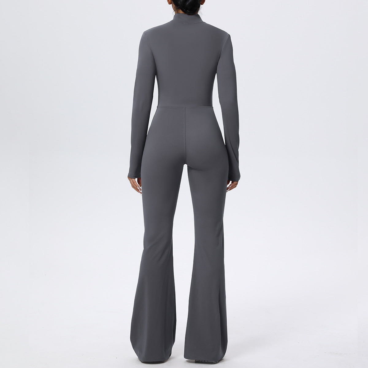 Experience the ultimate in activewear innovation with this zipper yoga jumpsuit. The nude feel nylon fabric delivers a barely-there sensation while providing exceptional support and coverage for your most intense workouts. The sleek bell bottom silhouette adds a fashion-forward edge to your fitness wardrobe.